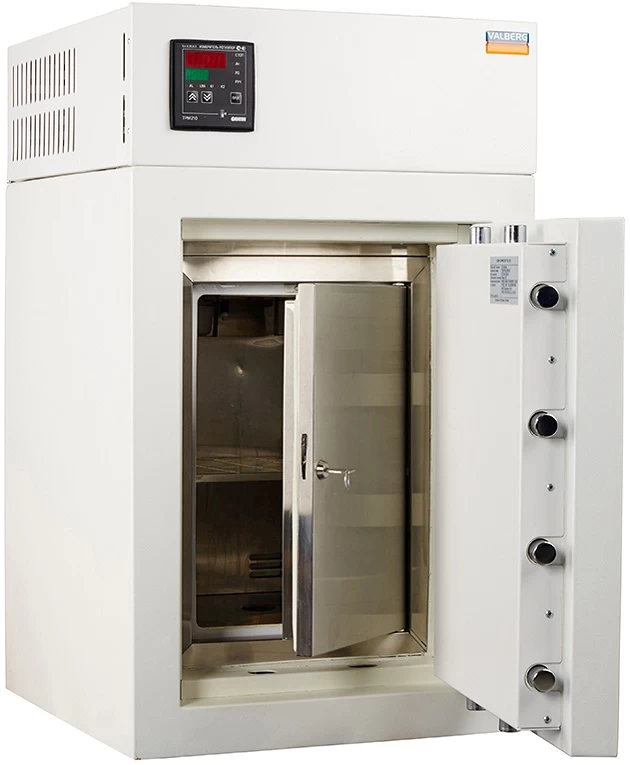 Valberg TS-3/25 KL – полупроводниковый сейф-термостат повышенной взломостойкости, ориентированный на нужды медицинских учреждений, заинтересованных в технически грамотном и безопасном содержании наркотических, психотропных и лекарственных средств. Высокий уровень устойчивости подтверждён сертификатом 3 класса по ГОСТ Р 50862-2012. Среди выгодных отличий от прочих сейфов-холодильников подобного типа следует отметить бесшумную работу, экологичность (хладагент не используется) и энергосбережение – 110 Вт.